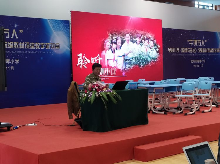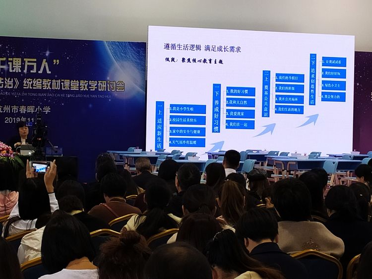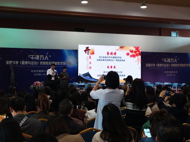 2019年秋季,由教育部组织编写的统编《道德与法治》教材在全国中小学全面投入使用。新教材的使用,为提升当下中小学生的法治素养明确了路径,也给每一位道法课教师带来巨大的挑战。11月中旬,武汉外小王涛老师与康玮老师走进杭州,参加了“千课万人”小学《道德与法治》统编教材教学研讨培训会。
