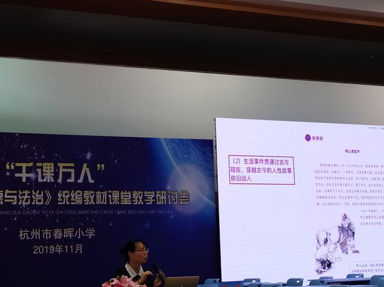 杭州市道法教研员方丽敏老师~作了一场“小学《道德与法治》教材特征与教学建议”的精彩报告,不仅帮助老师们更精准地把握教材,更使大家深刻领悟到: 道法课要从孩子的角度,为生活而教, 用生活来教,在生活中教。